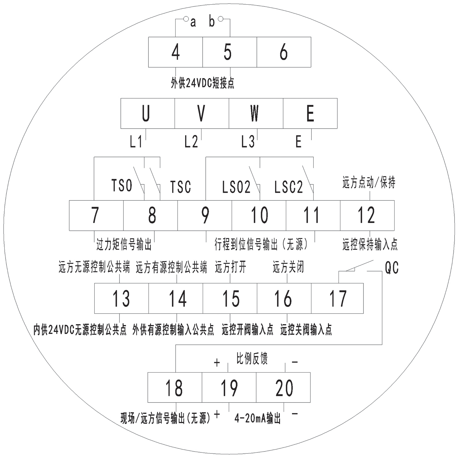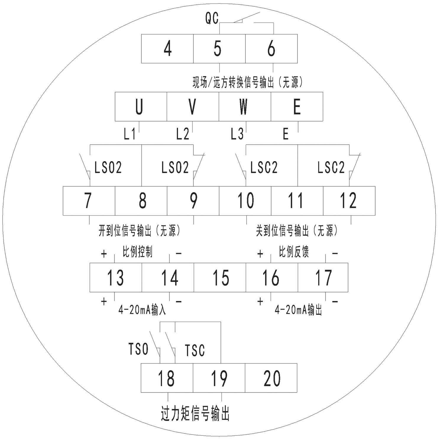 整體調節型閥門電動(dòng)裝置端子接線圖-戶外 整體調節型閥門電動裝置端子(zǐ)接線圖- 隔爆